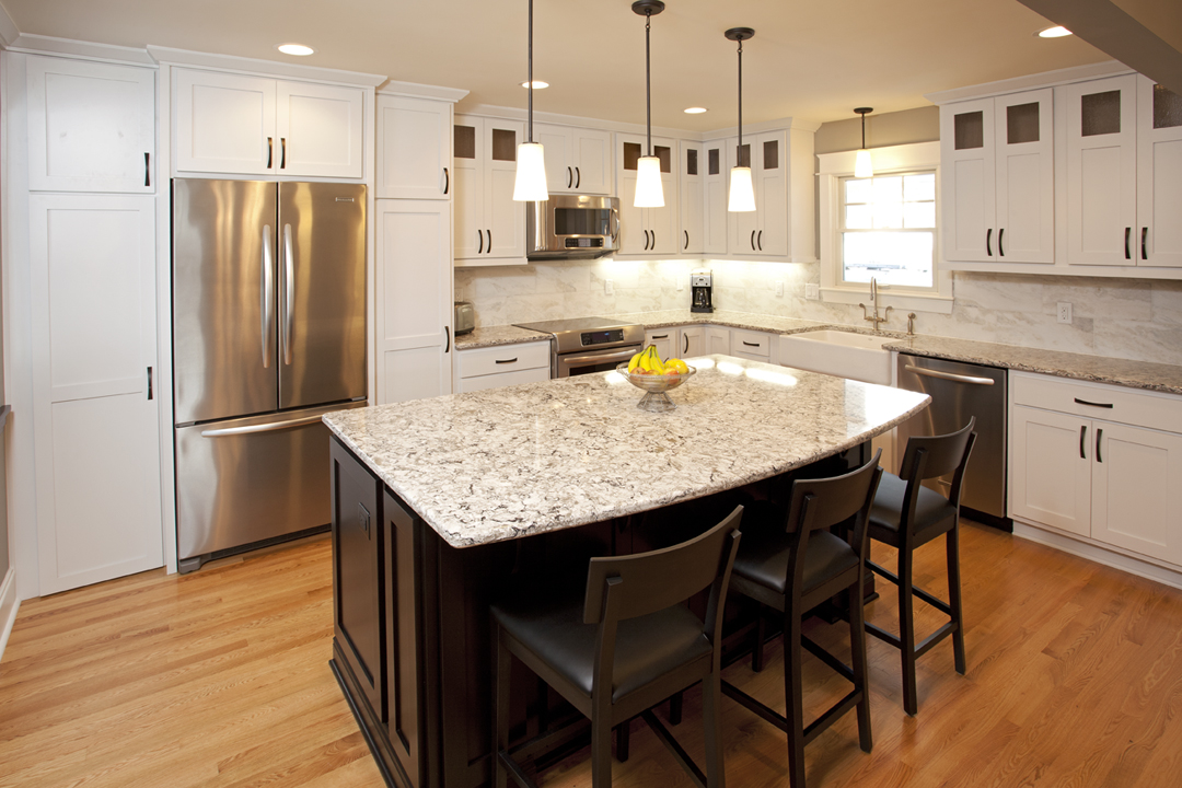 Contractor: Spacemakers Remodeling Cabinet manufacturer: Koch and co. Door style: Savannah Wood species: Birch Stain/paint color: White paint/ Java stain